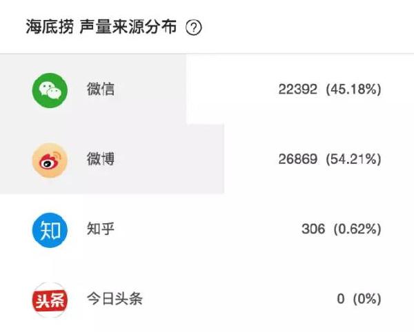 海底撈其實就傾向“口碑分享”的路線,它在微博上的聲量明顯高于微信公號上的,說明很大部分與“海底撈”有關(guān)的信息都是人們自發(fā)的分享,而不是故意為它寫一篇推文。
